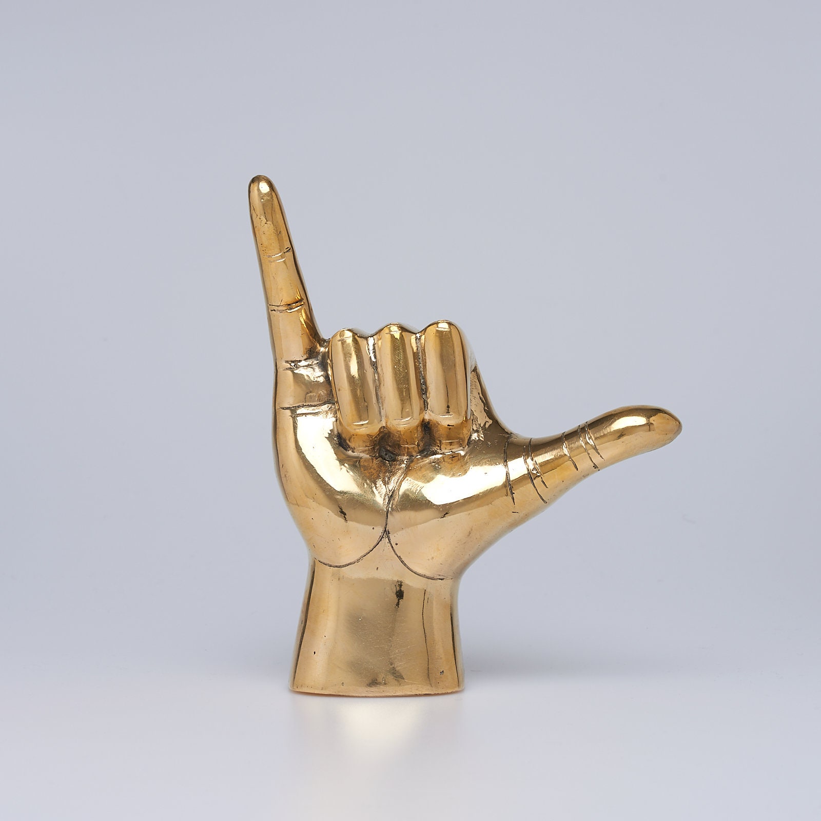 Shaka Hang Loose Hand Signal Sculpture In Polished Brass Etsy Uk